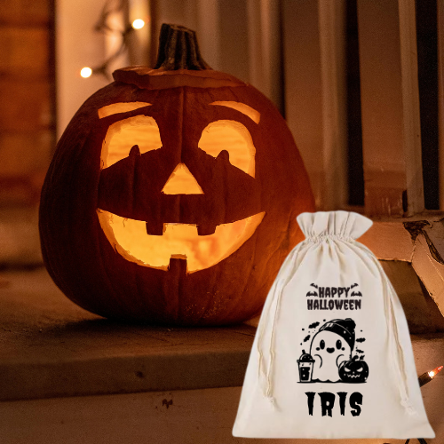 • Saco de algodón  para HALLOWEEN , para que los mas pequeños de la casa pongan las chuches en un dia tan especial.