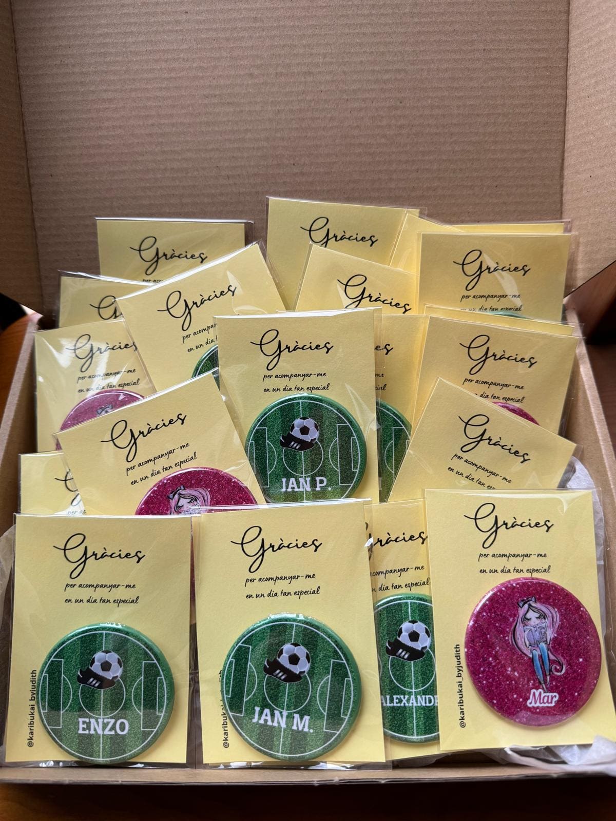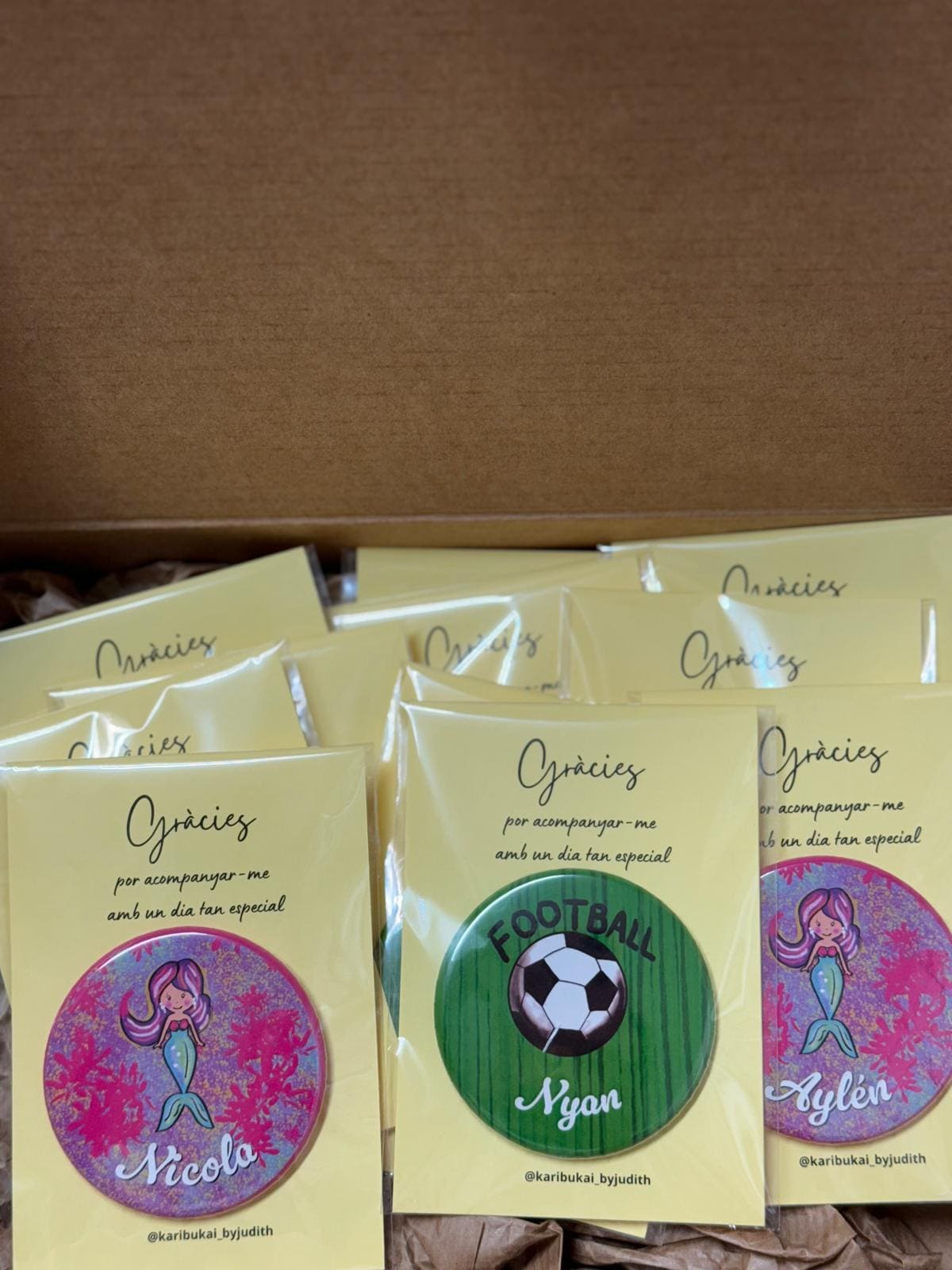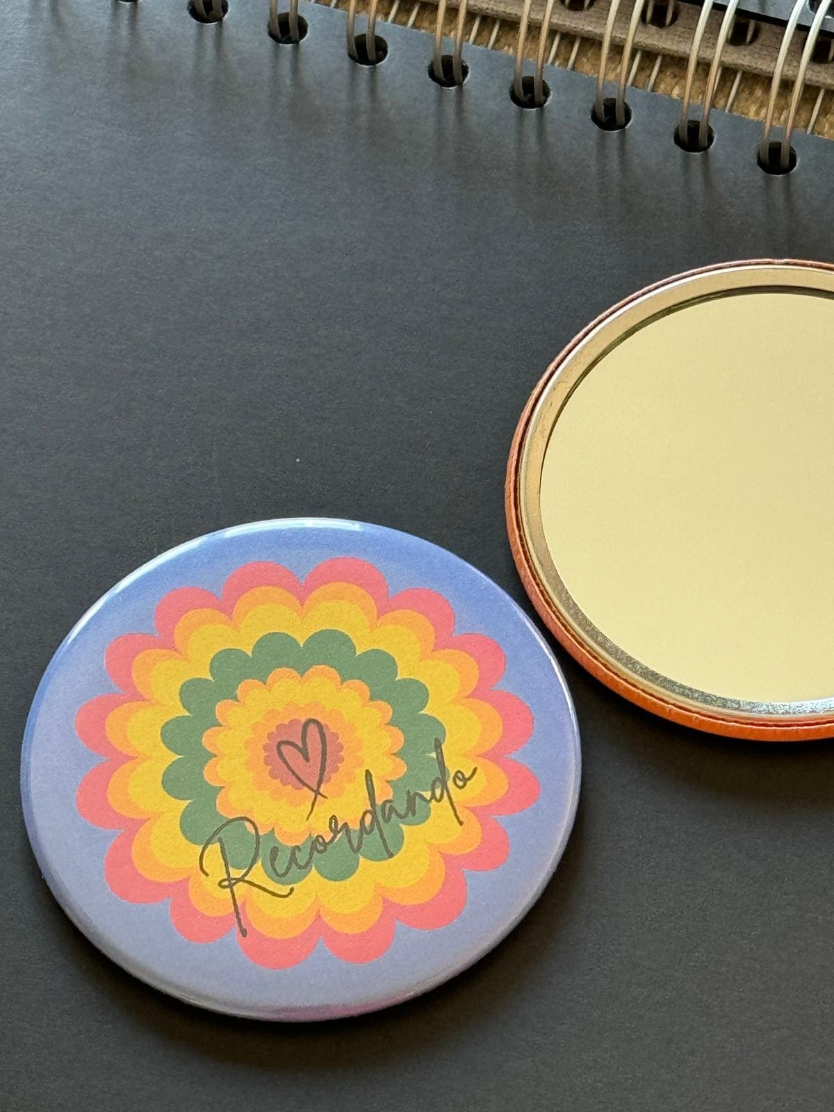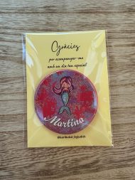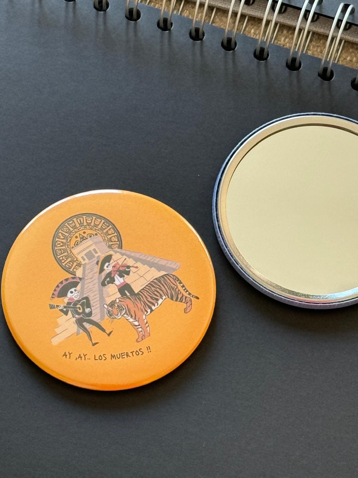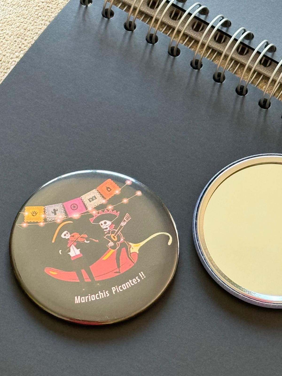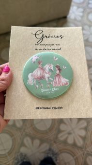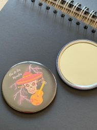 - Elige entre chapas alfiler para presumir en la ropa, imán para la nevera y también tienes opción espejo.