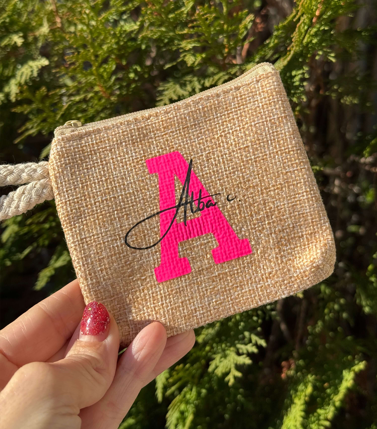 - Bonitos monederos de yute en color crudo.